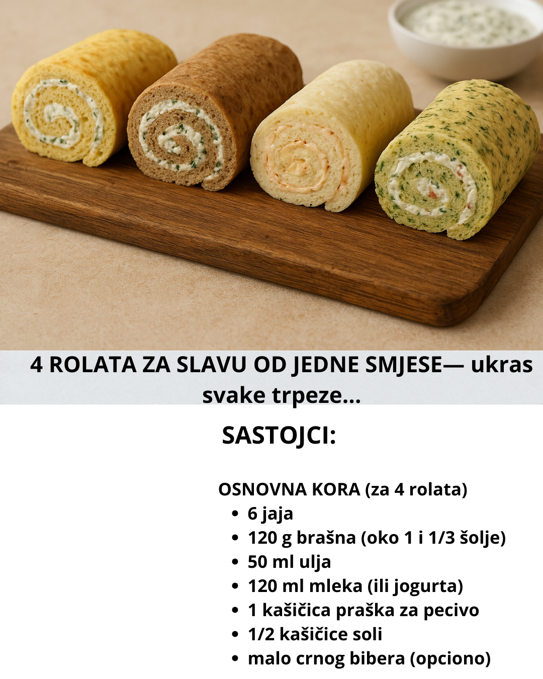 Ako želiš peti rolat (slika je 4 komada, ali prethodno si govorio 4–5), evo brzog recepta: