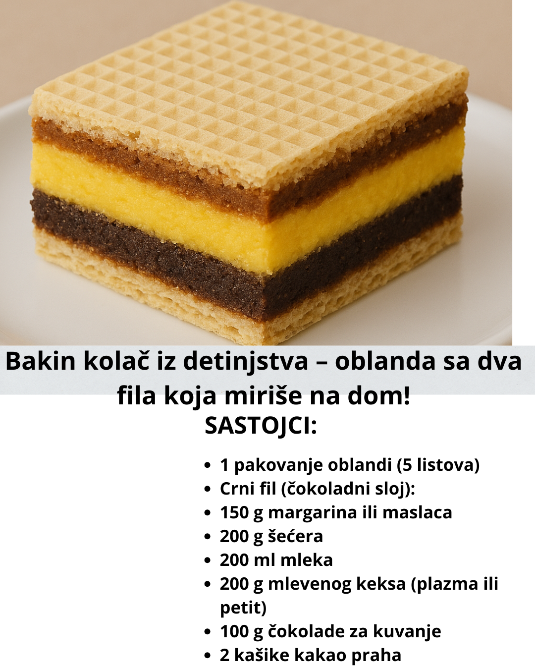 Bakin kolač iz detinjstva – oblanda sa dva fila koja miriše na dom!