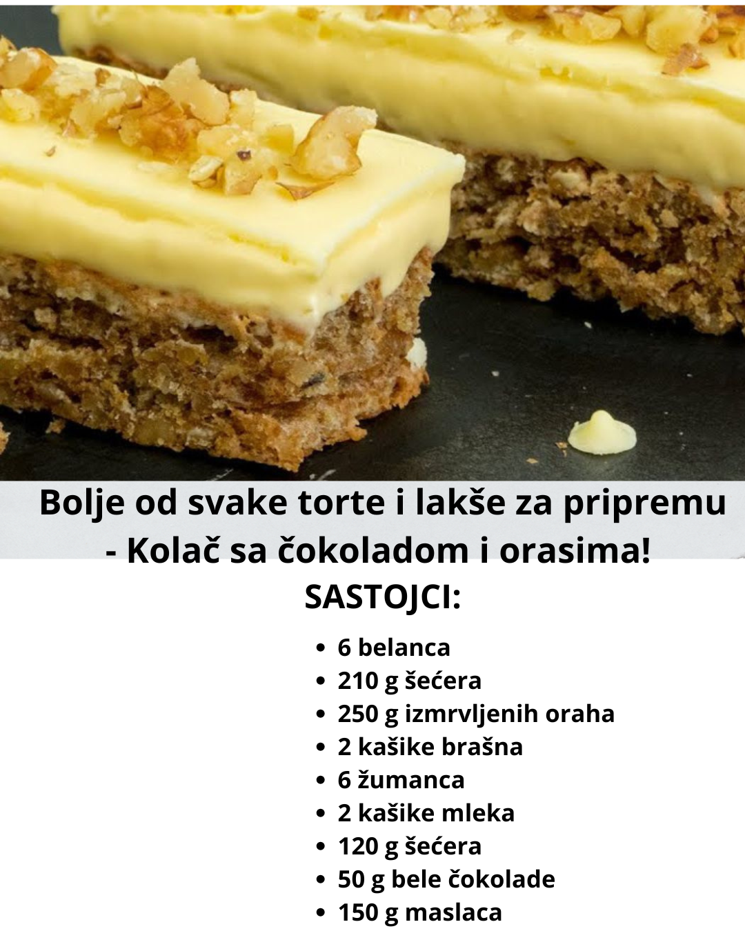 Bolje od svake torte i lakše za pripremu – Kolač sa čokoladom i orasima!