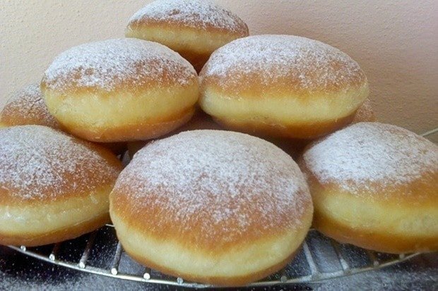 Sastojci: – 400 ml mlakog mlijeka – 1 sviježeg kvasca (može i suhi) – 1 žlica kristal šećera – 2 jaja – 50 ml ulja – 700 g glatkoga brašna – 1 žličica soli – 1 l ulja (za prženje) – 50 g šećera u prahu (za posipanje) Po želji: – Lino lade nougat/marmelada / … Read more