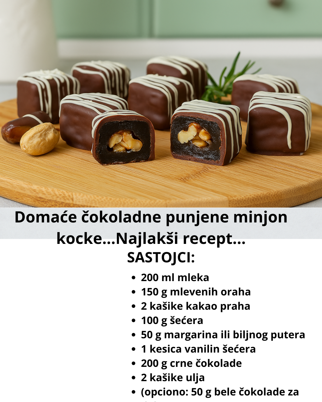 • (opciono: 50 g bele čokolade za dekor)