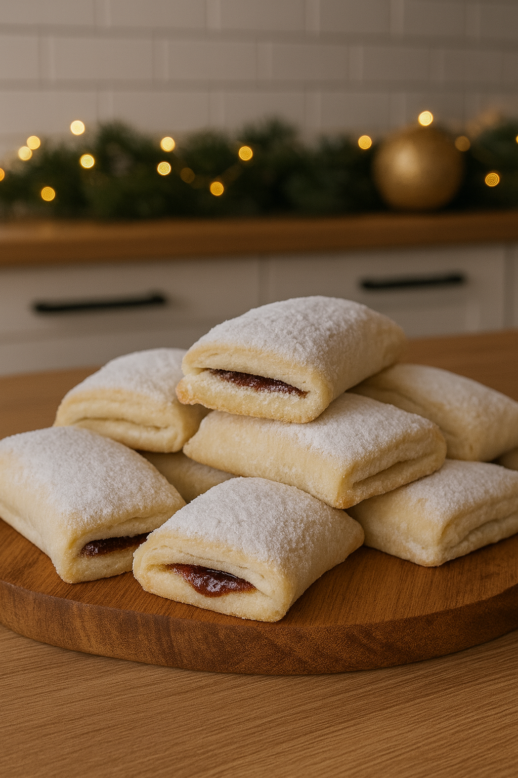 • Tople kiflice odmah uvaljati u šećer u prahu, da se lepše zalepi i napravi fini beli sloj.
