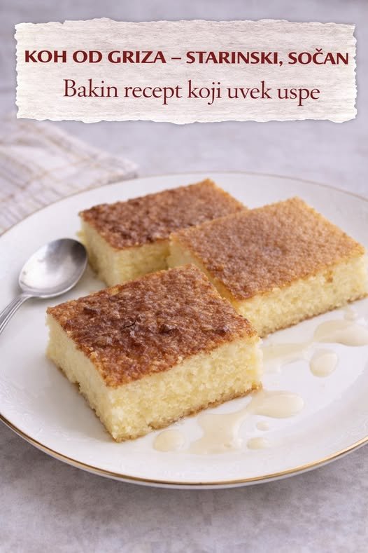 Jaja umutiti sa šećerom i vanilin šećerom dok smesa ne pobeli i postane penasta. Dodati jogurt i ulje, pa kratko sjediniti. Umiješati griz, zatim brašno pomešano sa praškom za pecivo i sve lagano izmešati dok se ne dobije glatka smesa.