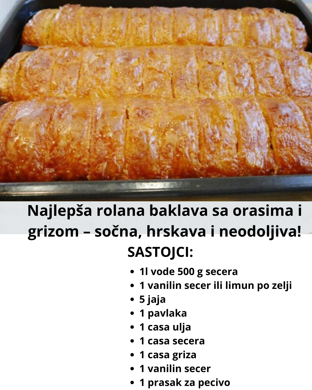 Najlepša rolana baklava sa orasima i grizom – sočna, hrskava i neodoljiva!