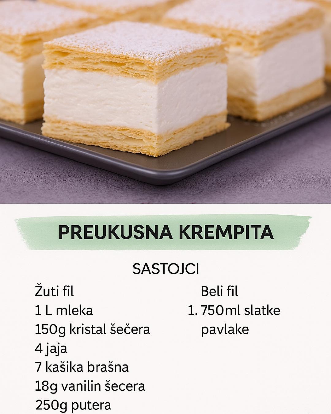 Za ovu pitu mnogi nisu vjerovali da je od kupovnih kora.Ako pratite sve korake i vi mozete za tren da napravite istu.Ova pita je idealna kada nemate volje da razvijate ili kada želite nesto na brzinu da napravite.