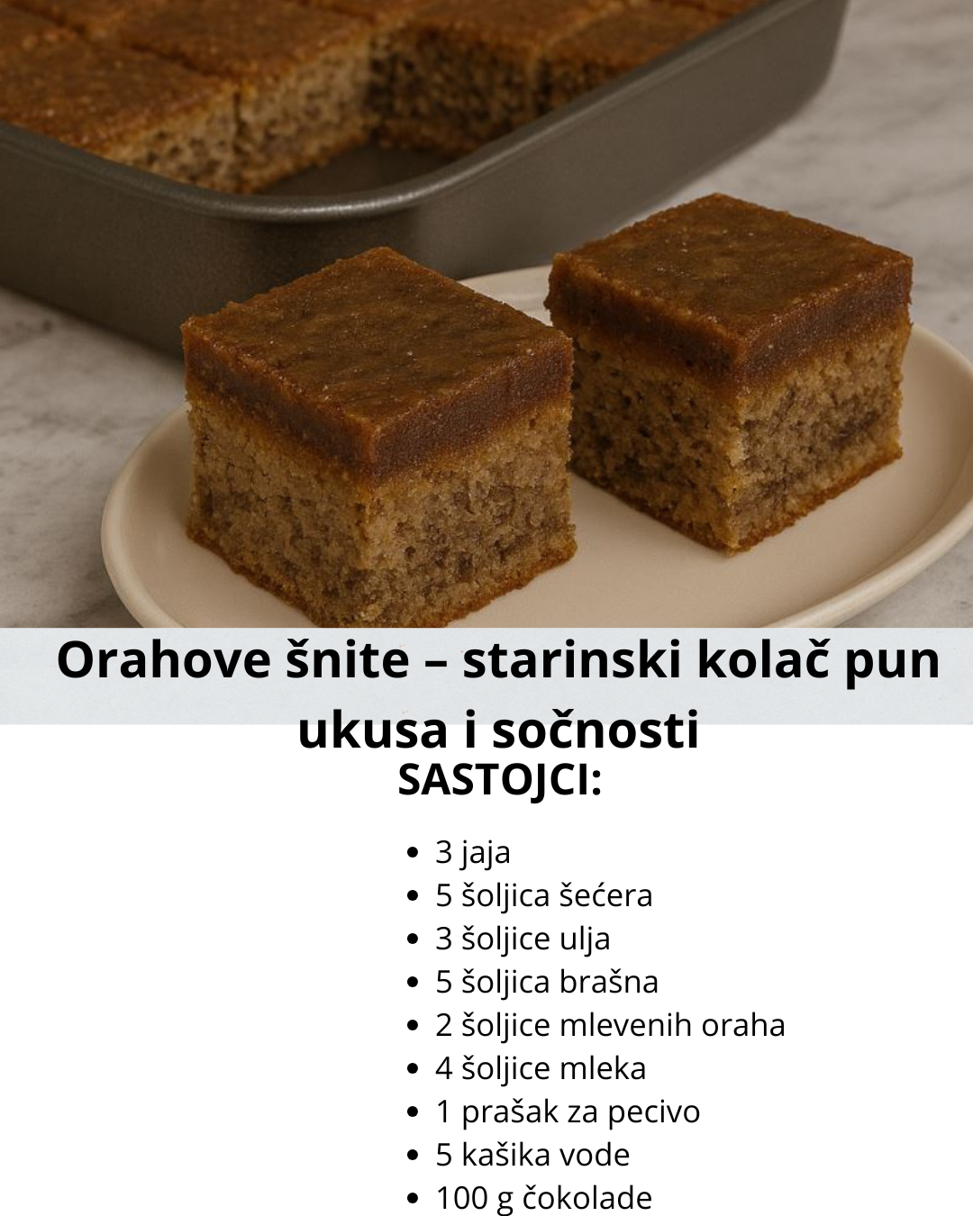 Ostavite da se ohladi i uživajte u bogatom, punom ukusu čokolade i oraha koji se savršeno stapaju u svakoj šniti.