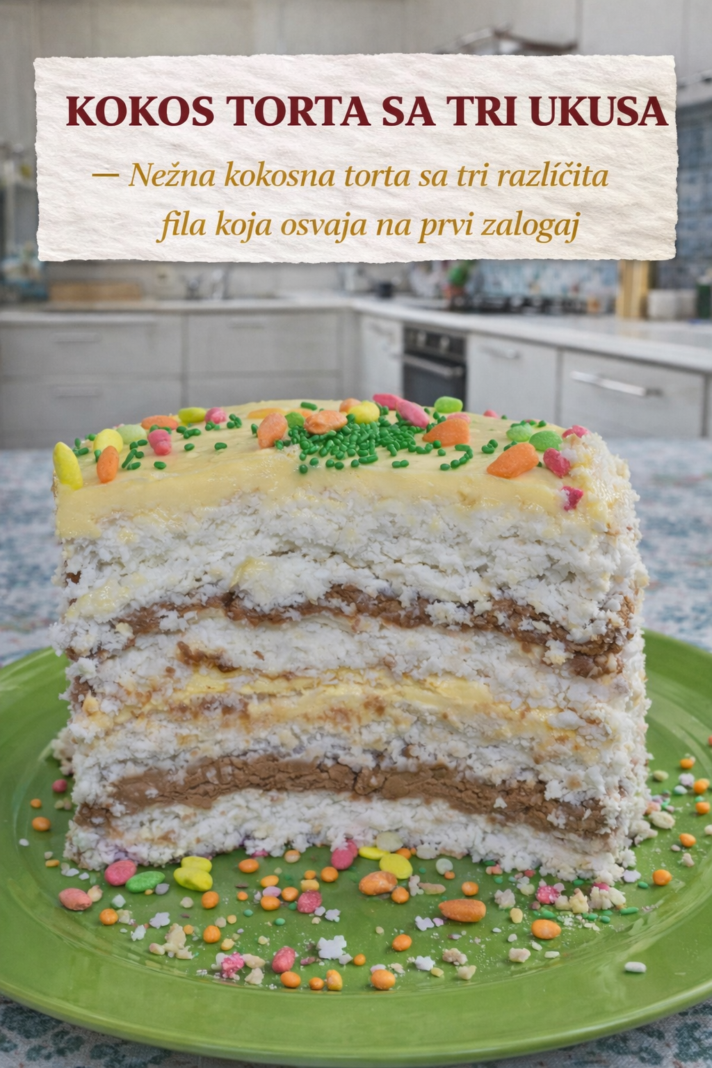 NESQUIK SAN TORTA Torta puna bogatih, kremastih filova Sastojci Kora 5 jaja 5 kašika šećera 3 kašike brašna 2 kašike Nesquik kakaa 1 kašika ulja 1/2 kesice praška za pecivo Svetli (vanila) fil 500 ml mleka 2 kesice pudinga od vanile 5 kašika šećera 125 g margarina ili putera Tamni (Nesquik) fil 500 ml mleka … Read more