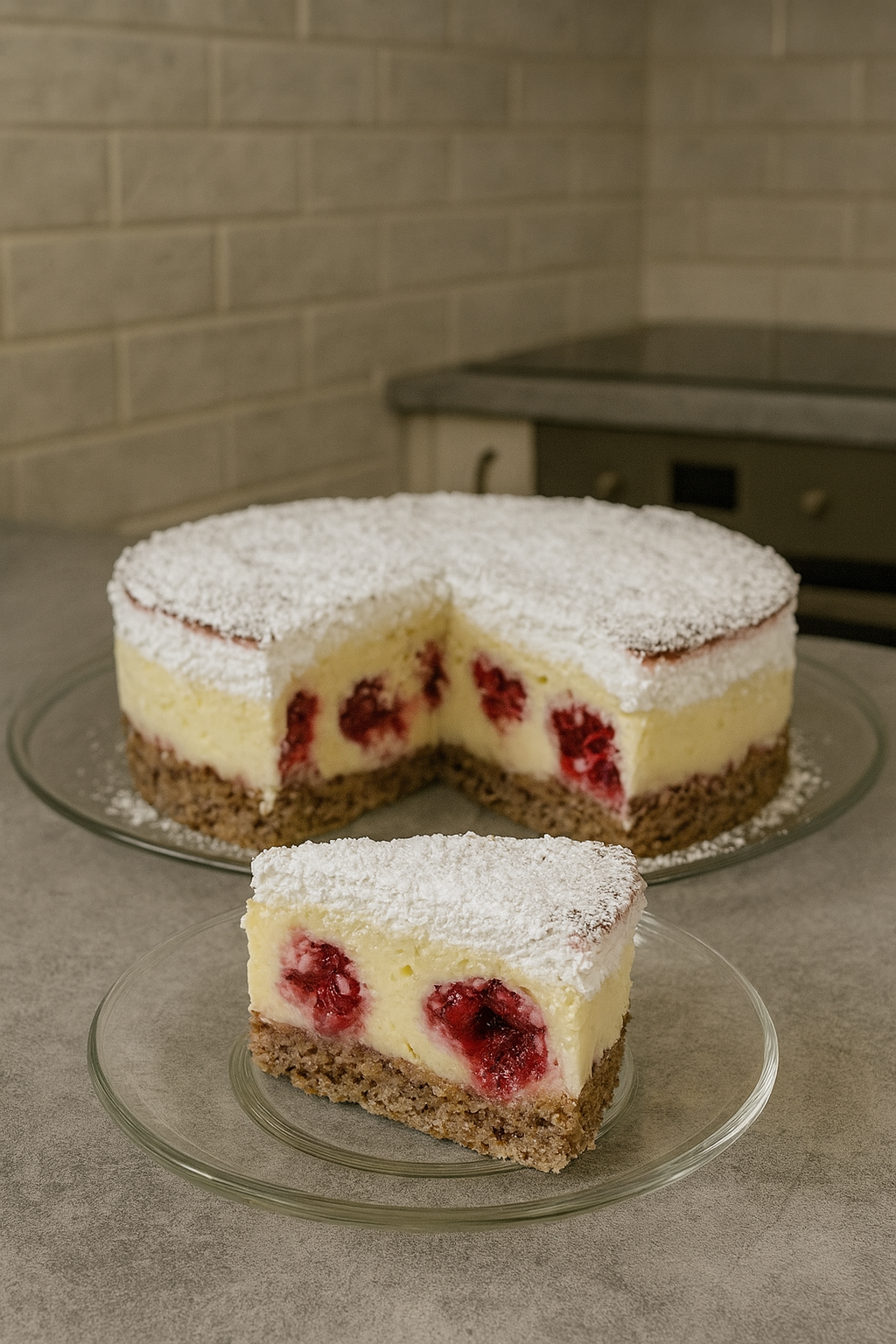 Možeš dodati i tanak sloj džema od maline preko kore pre krema — okus još bolji.