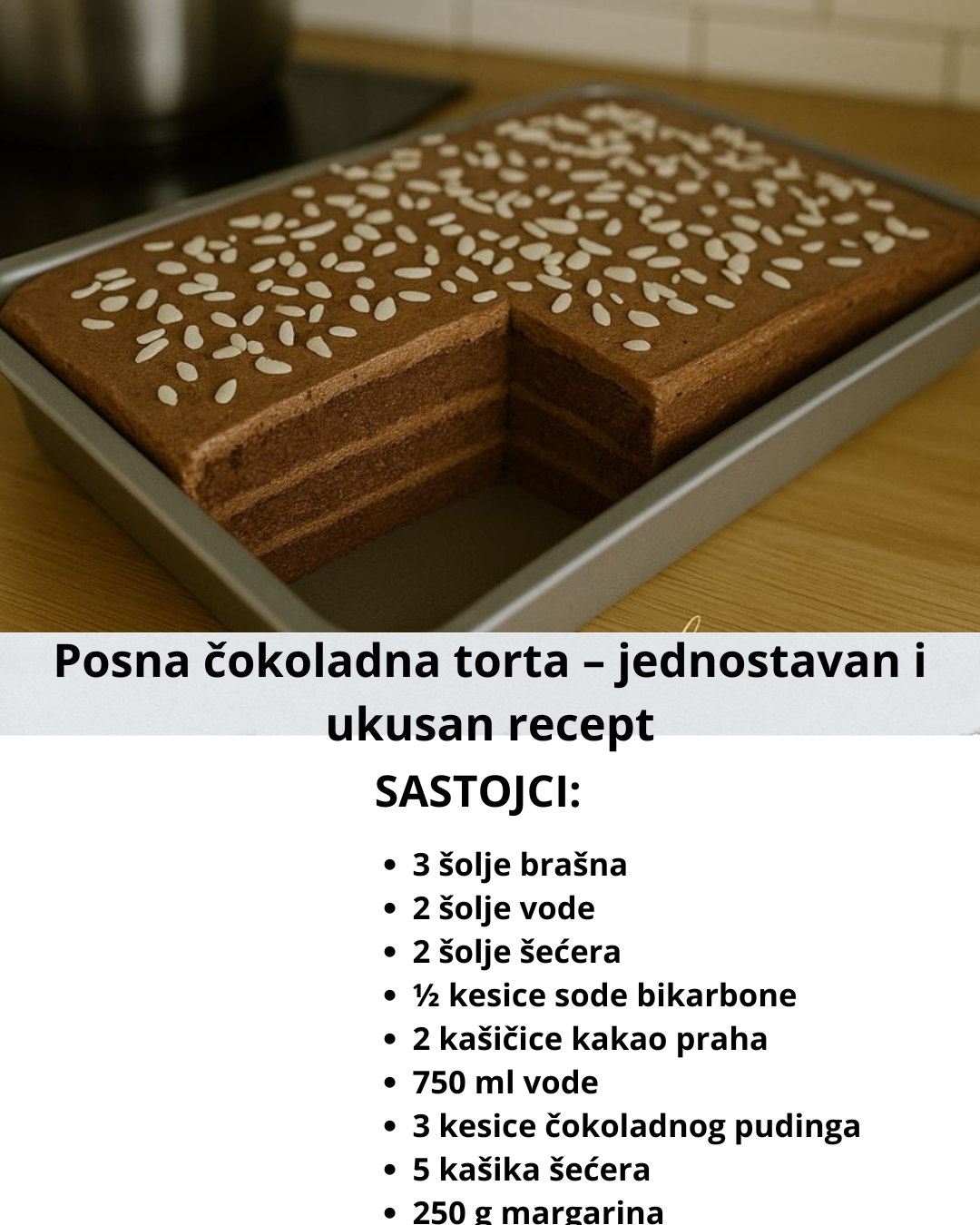 Ako tražiš posnu čokoladnu tortu koja je sočna, čokoladna i lako se pravi, ovo je recept koji ćeš obožavati! Savršena je za post, slave, rođendane ili bilo koju priliku kada želiš da uživaš u bogatom ukusu bez mlečnih proizvoda i jaja.