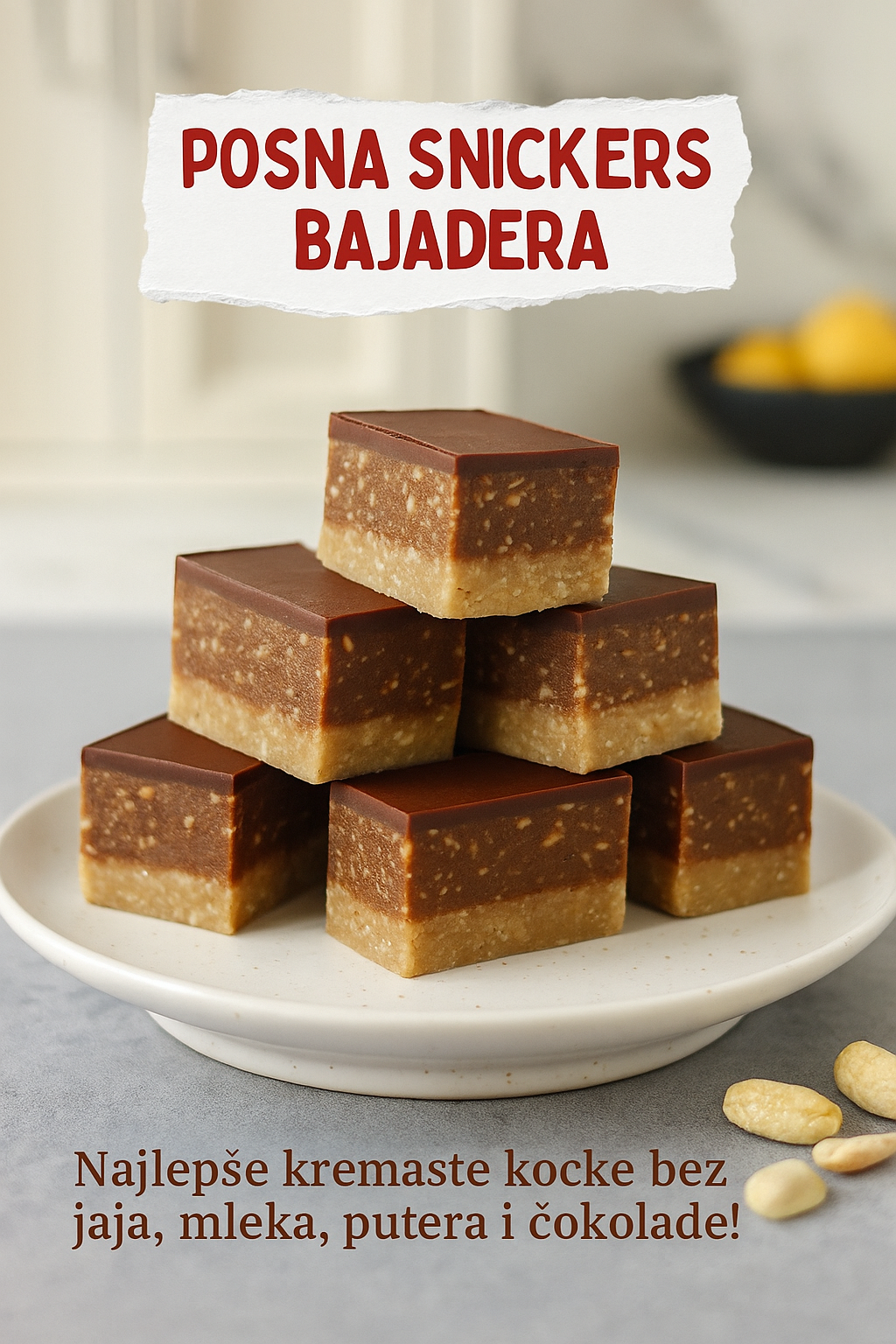 Savršeno kremaste kocke bez jaja, mleka, putera i čokolade – a ukus kao originalni Snickers! Jednostavno, brzo i neodoljivo!
