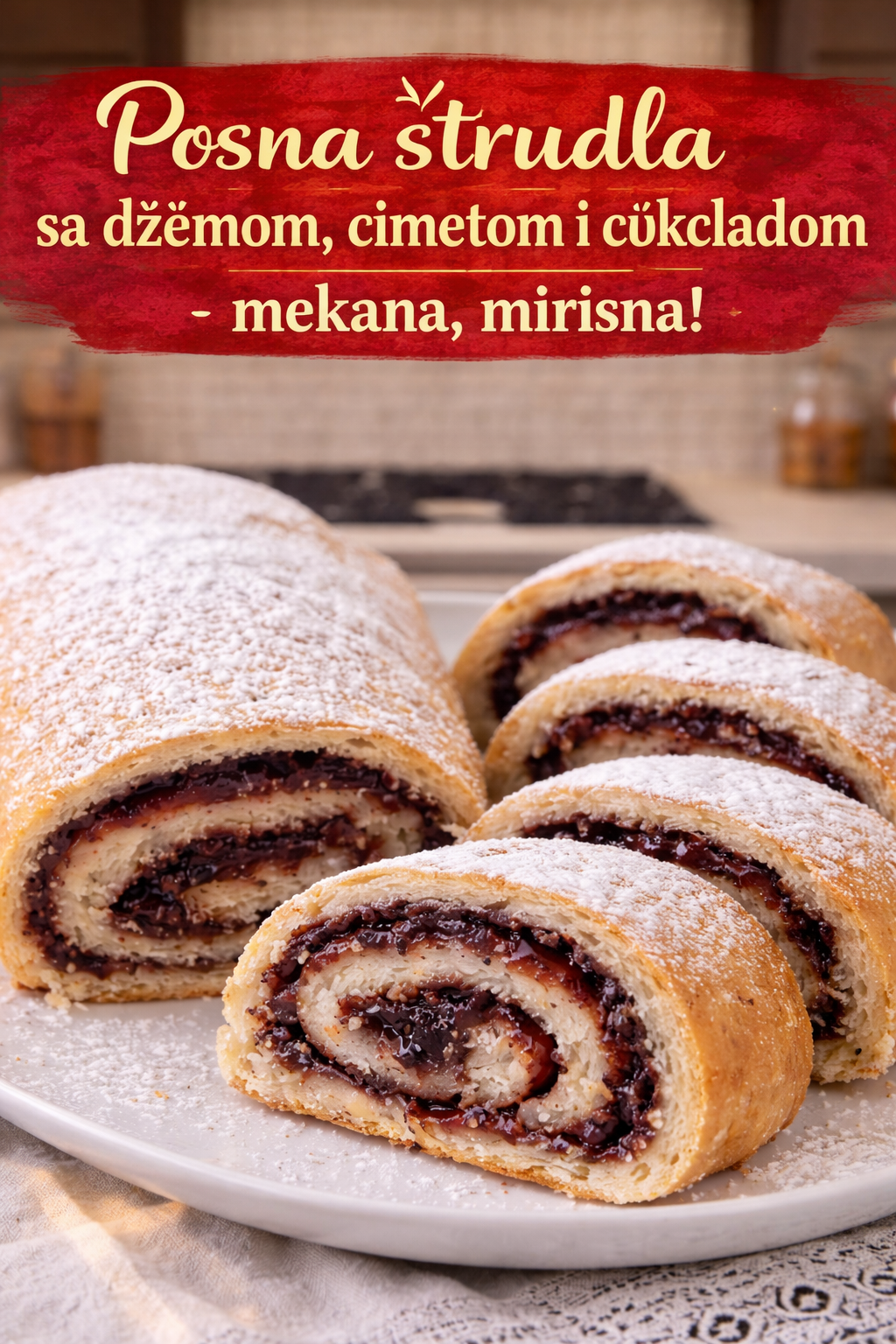 Posna štrudla sa džemom, cimetom i čokoladom – mekana i mirisna