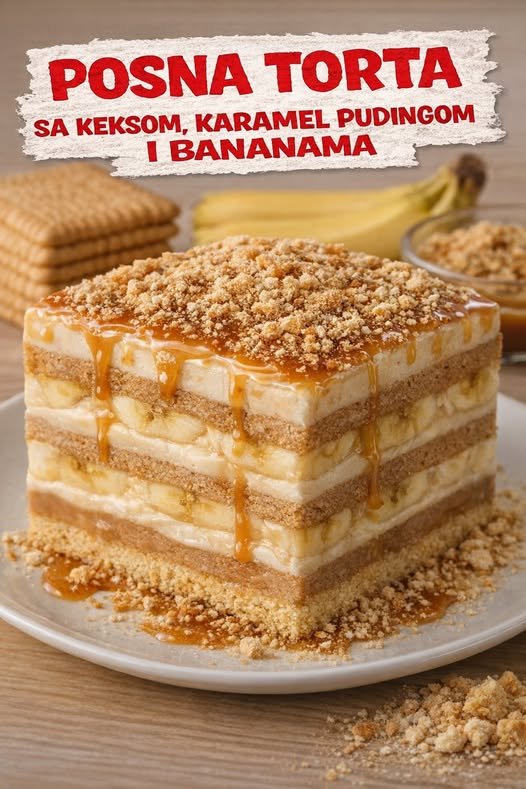 POSNA TORTA sa keksom, karamel pudingom i bananama…