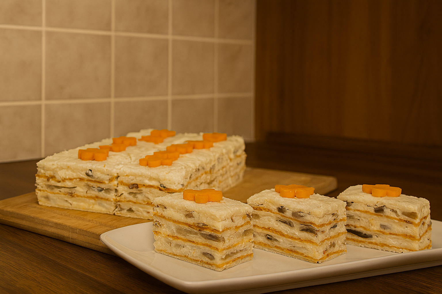 • Poklopi drugom korom i ponavljaj postupak dok ne potrošiš sve kore i fil.