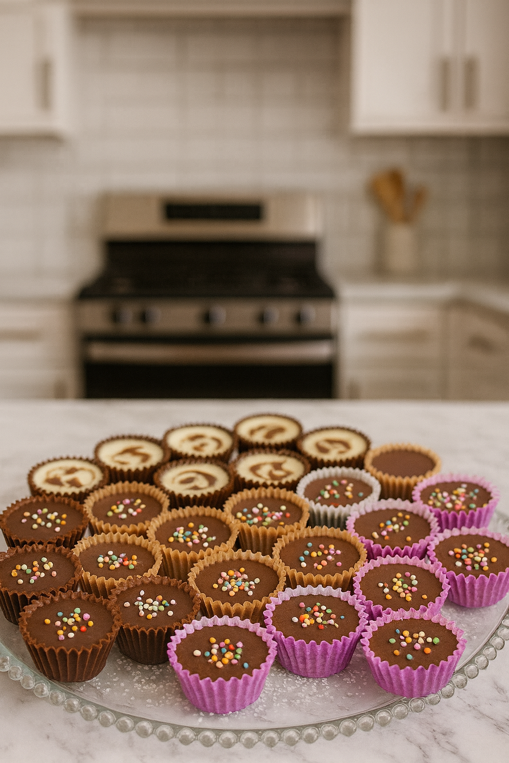 Po želji dodati mramorni beli preljev ili šarene mrvice.