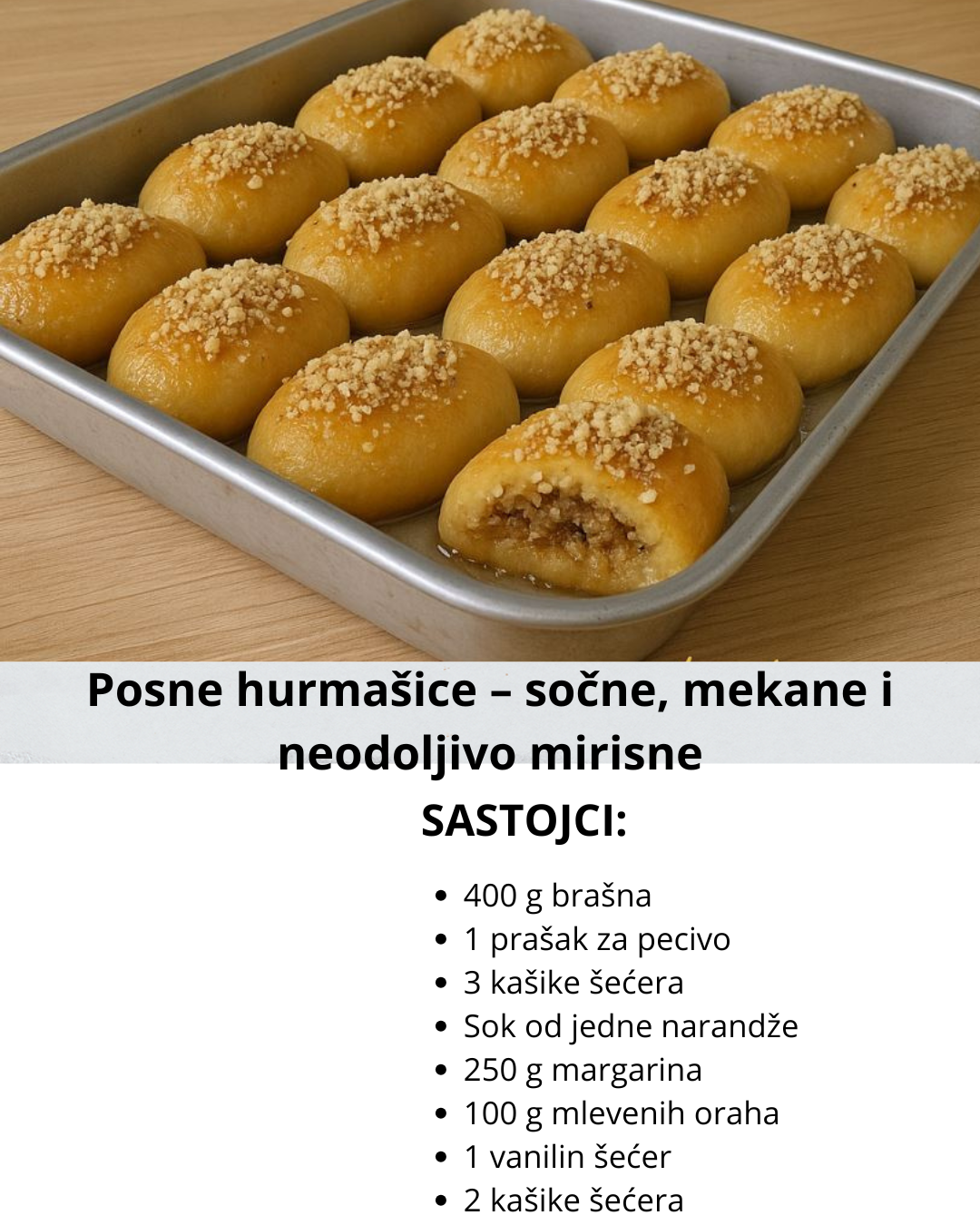 Ako tražite savršen recept za posne hurmašice, koje su istovremeno sočne, mekane i ukusne – na pravom ste mestu! Ove tradicionalne hurmašice se prave bez jaja i mlečnih proizvoda, pa su idealne za vreme posta ili kada želite lagan, a bogat kolač. Uz jednostavne sastojke i divan miris narandže i limuna, dobićete desert koji će oduševiti sve.