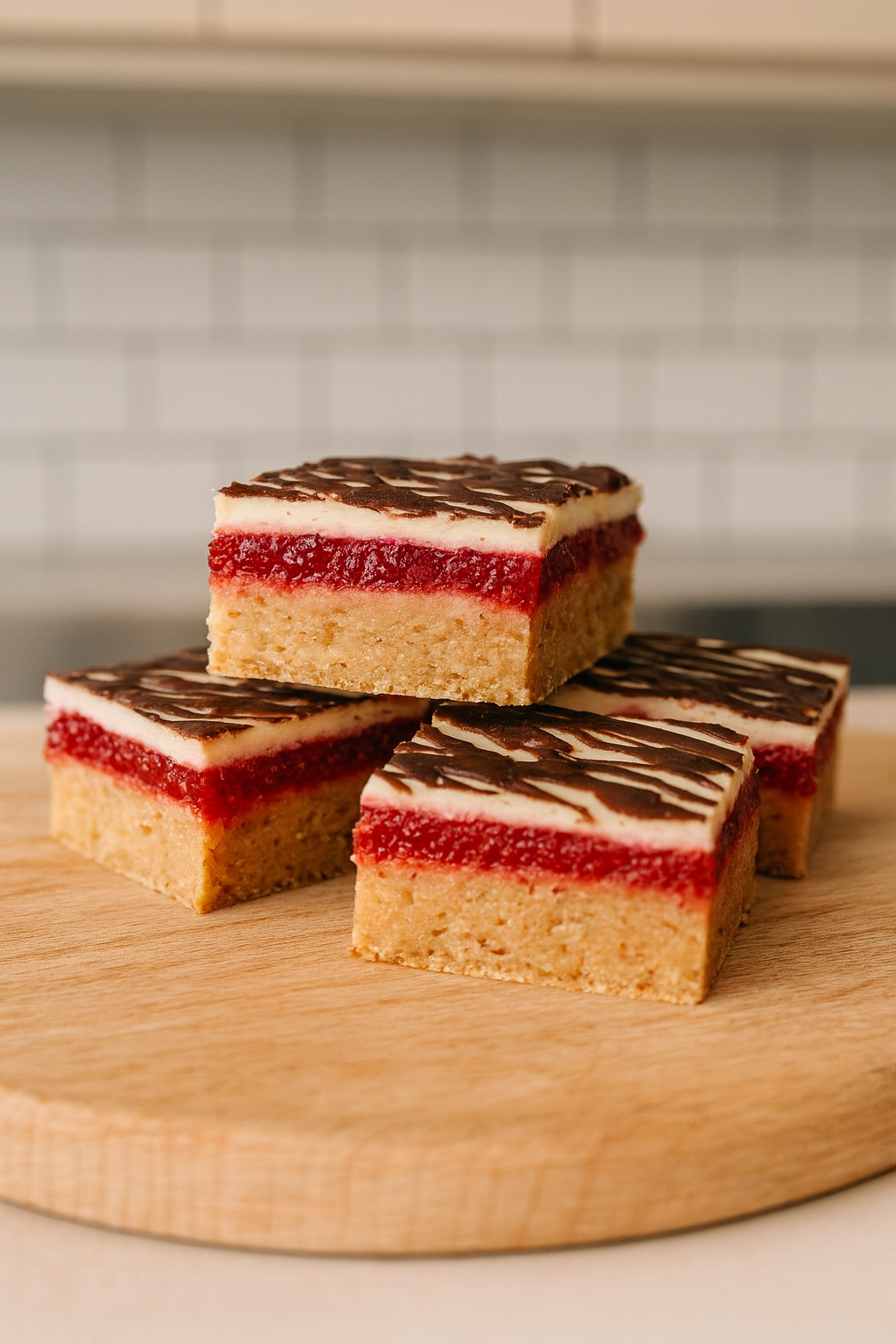Otopiti posnu tamnu čokoladu i tankim potezima napraviti šare po vrhu (kao na slici).