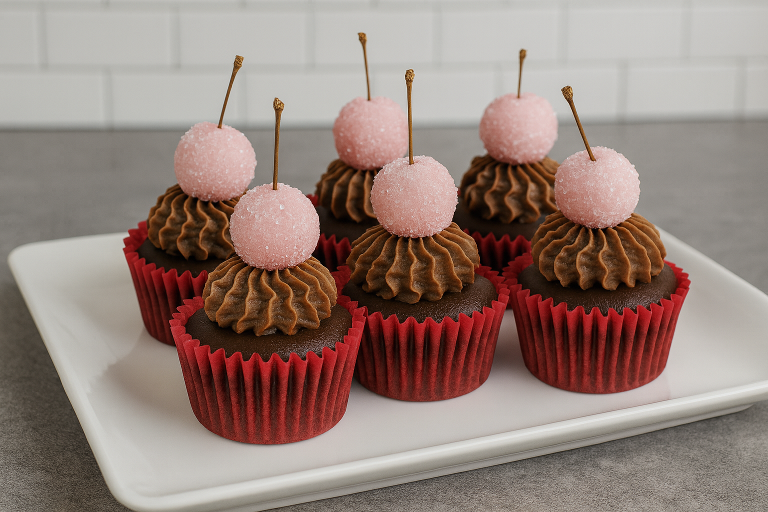 4. Sipati smesu u crvene papirne korpice – do pola.