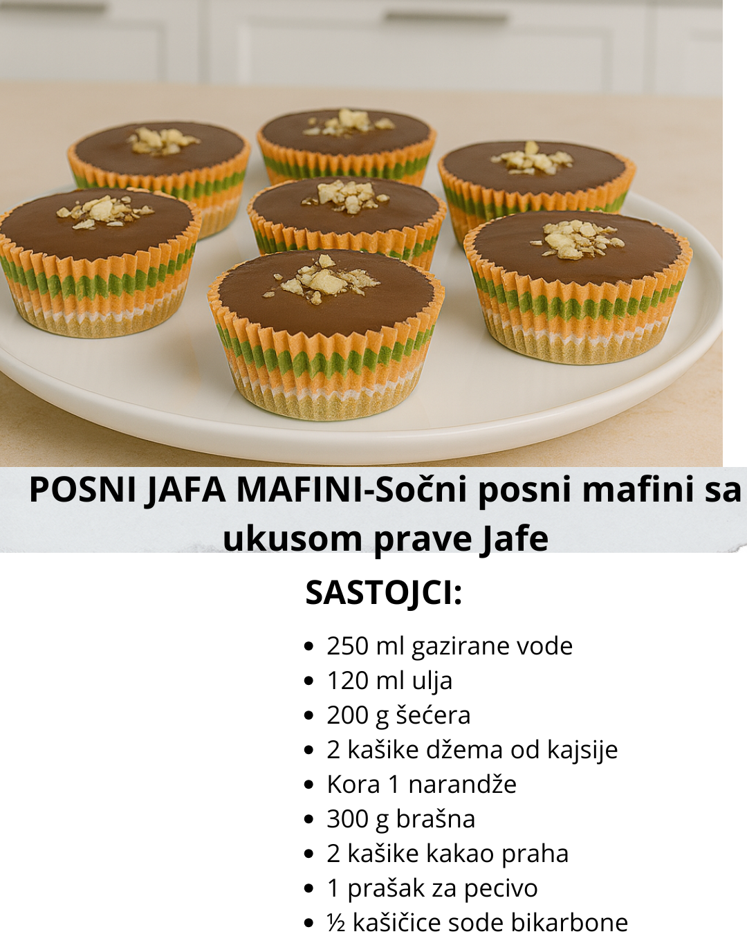 Mekani čokoladni mafini sa posnim čokoladnim preljevom i ukusom narandže.