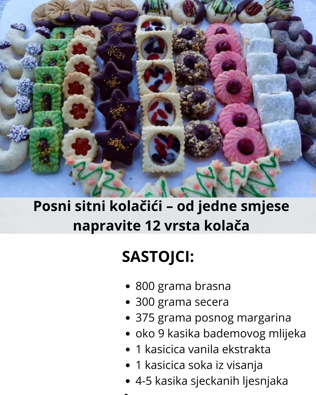 Posni sitni kolačići – od jedne smjese napravite 12 vrsta kolača
