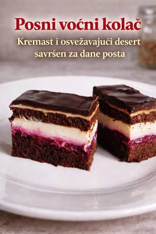 Sočan čokoladni biskvit, voćni sloj i lagani krem – savršen kolač za dane posta.
