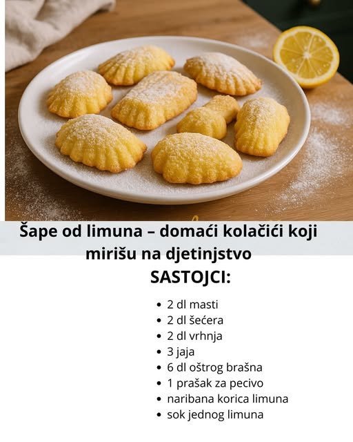 Šape od limuna jedan su od onih starinskih kolača koje svi pamtimo iz bakine kuhinje. Pripravljaju se jednostavno, od osnovnih sastojaka, a prepoznatljive su po aromi limuna i karakterističnom obliku zahvaljujući metalnim kalupima za šape. Ovi prhki kolači savršeno se slažu uz šalicu kave ili čaja, a posebno su popularni tijekom blagdana ili obiteljskih okupljanja.