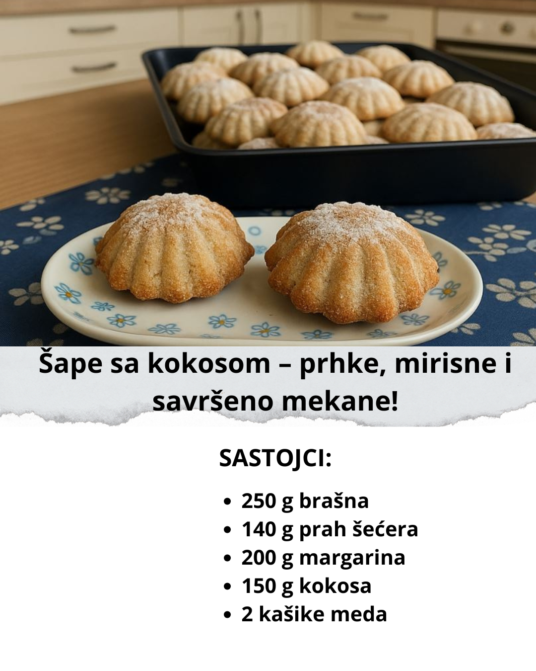 Ako volite tradicionalne kolačiće koji mirišu na detinjstvo, ove šape sa kokosom su pravi recept za vas! Po starinskom načinu pripreme, ali sa dodatkom kokosa – toliko su ukusne da nestaju čim se ohlade!