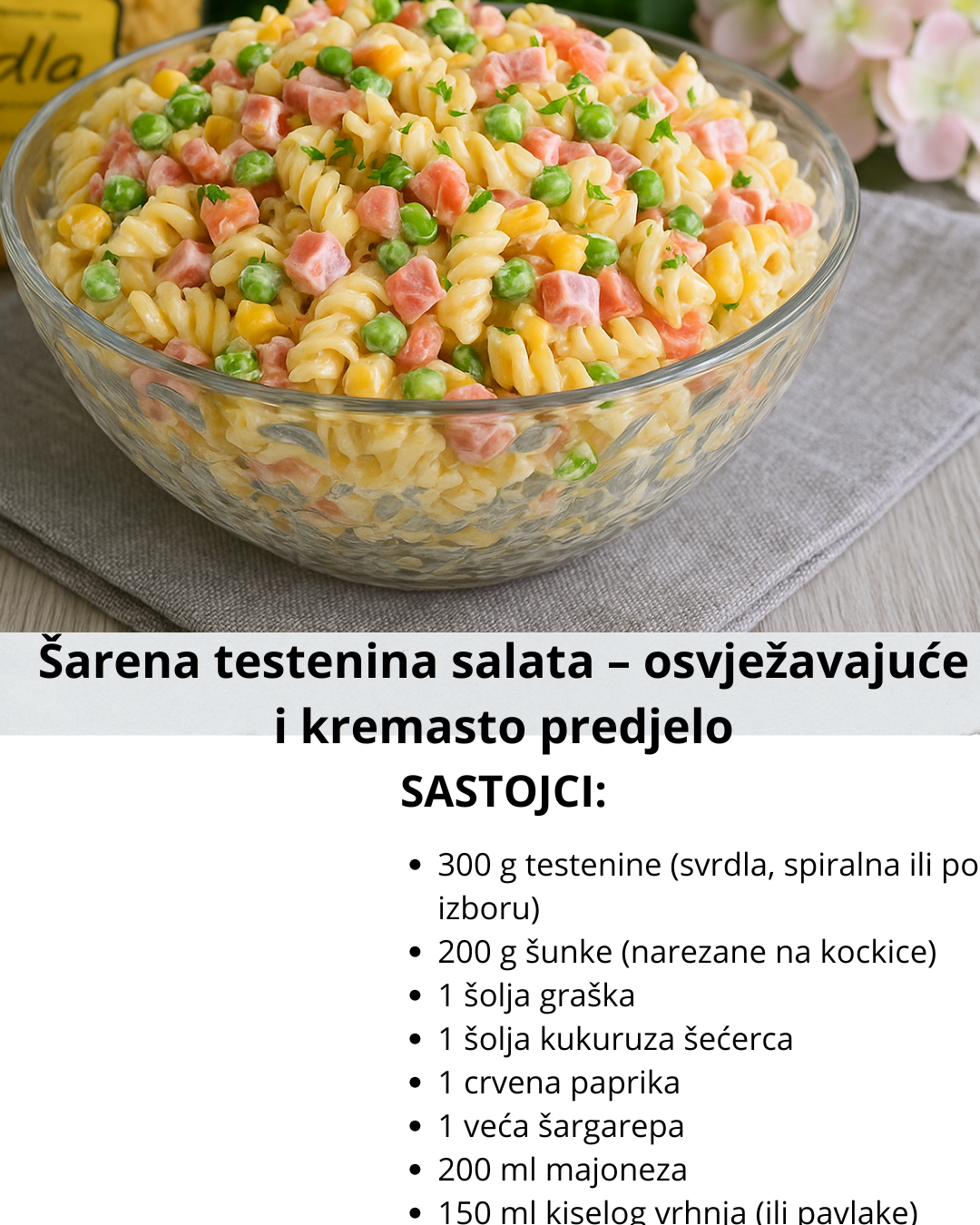 🥗 Šarena testenina salata – osvježavajuće i kremasto predjelo