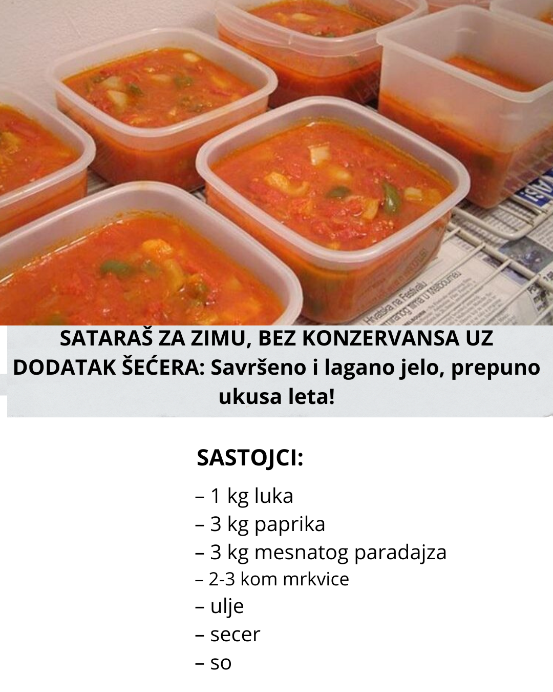 SATARAŠ ZA ZIMU, BEZ KONZERVANSA UZ DODATAK ŠEĆERA: Savršeno i lagano jelo, prepuno ukusa leta!