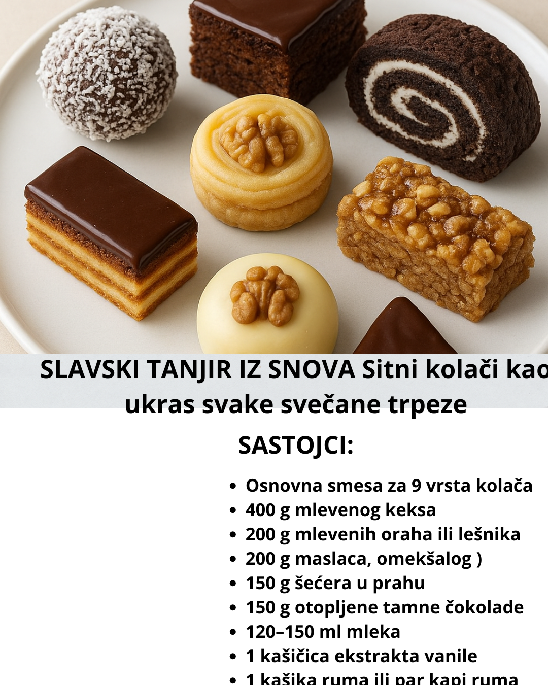 SLAVSKI TANJIR IZ SNOVA Sitni kolači kao ukras svake svečane trpeze. OSNOVNA SMESA ZA 9 VRSTA KOLAČA (baza za sve varijante)