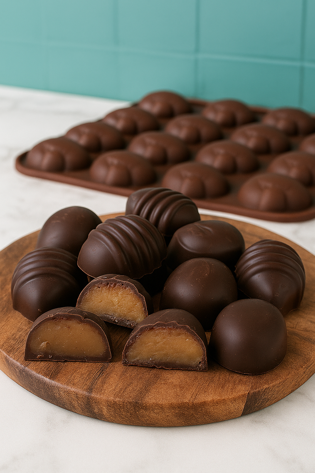 Preko toga nanesi još malo otopljene čokolade da zatvoriš pralinu.