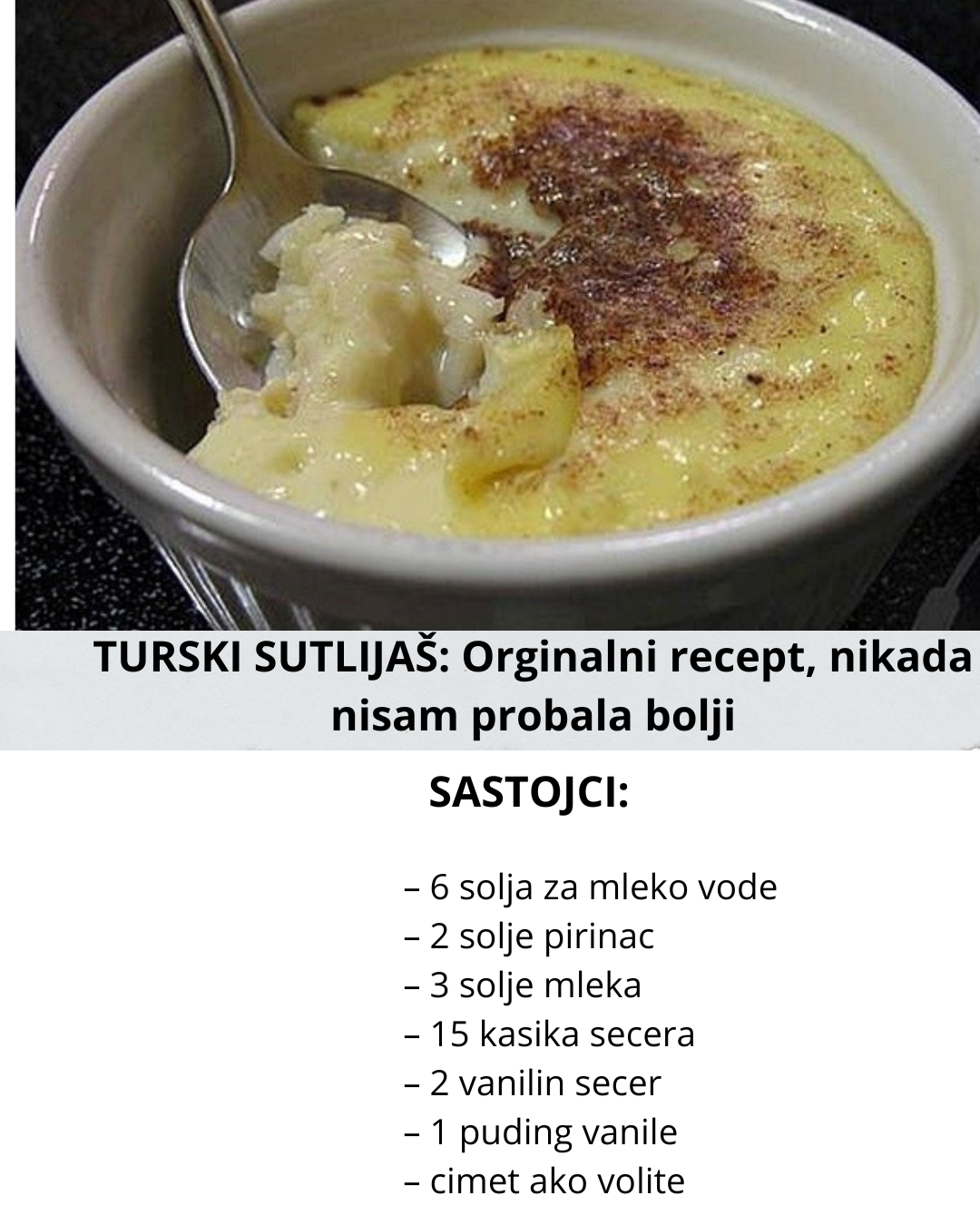 Vreli sutlijas stavite u mokre posudice, ako volite odozgo stavite cimeta (kanelu) ako ne lepo mirise na vanilu i bez njega. Moze se dodati i suvo grozdje, izvorni recept je sa njim, a moj je bez njega.