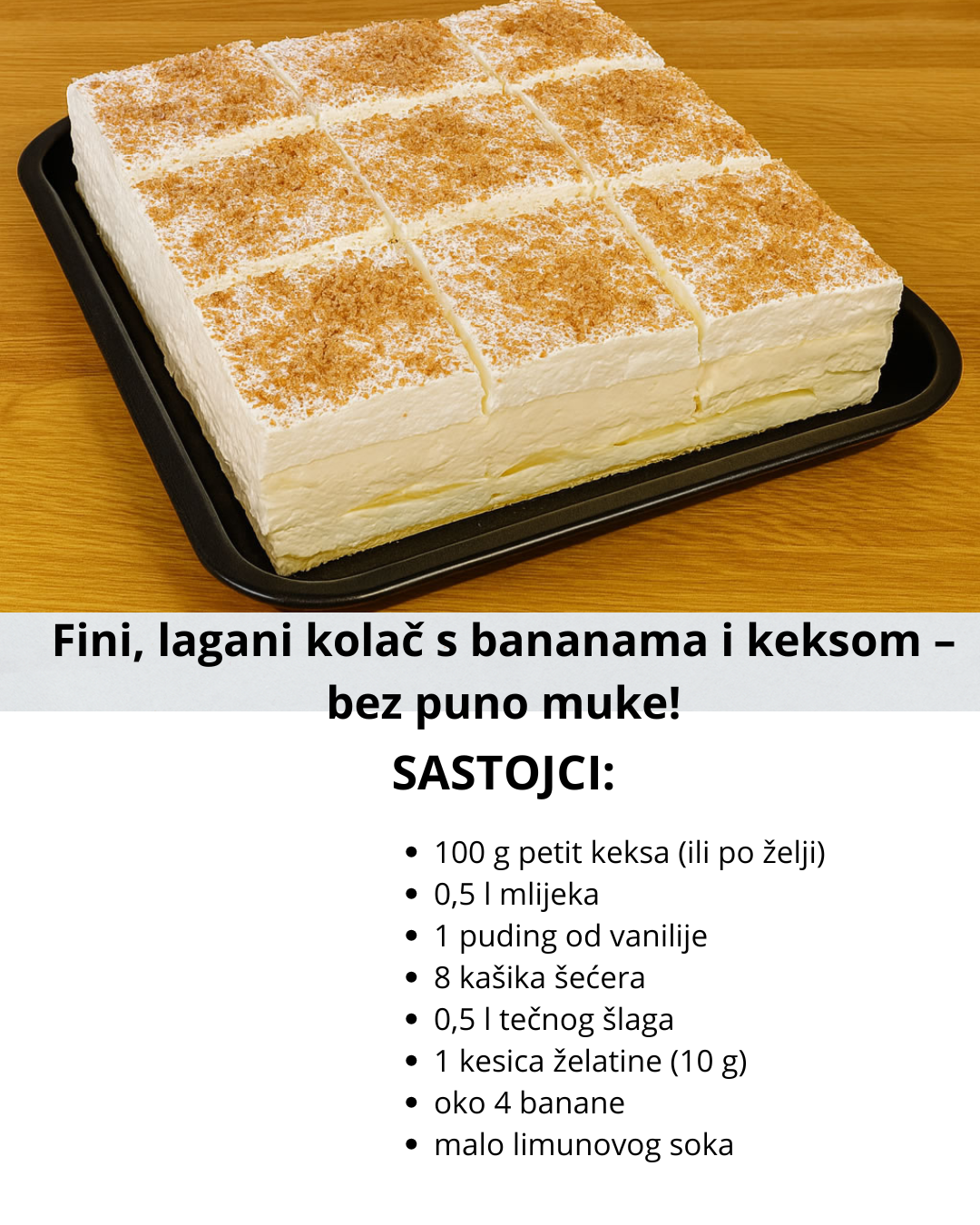 BEZ PEČENJA! Pravi se na jednostavan način, a nema ni mnogo sastojaka. Ukus je fantastičan, prava je za ovo vreme sada. Proleće i leto će obeležiti ovaj kolač. Jako je lagan i osvežavajuć, malo podseća na sladoled.